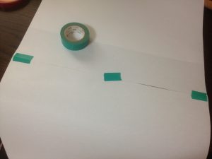 このときテープがこんなに曲がってしまっても、まったく問題ありません。なおテープの端が紙から出ないようにすると、とてもきれいに仕上がります!