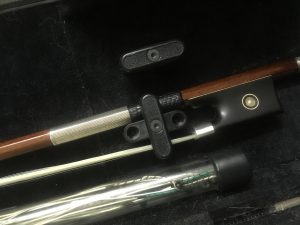 弓の留め具は、こちらの中に挿す型と、外から覆って固定する方が主流です、そしてこちらは弦ホルダー有
